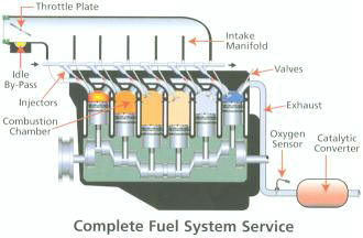We will disable your vehicles fuel system and run our flush solvent throughout the fuel system components. The throttle plate and bore are cleaned by our technicians when we are flushing the fuel system. This service not only cleans injectors and the throttle area, but also removes deposits from the intake valves.